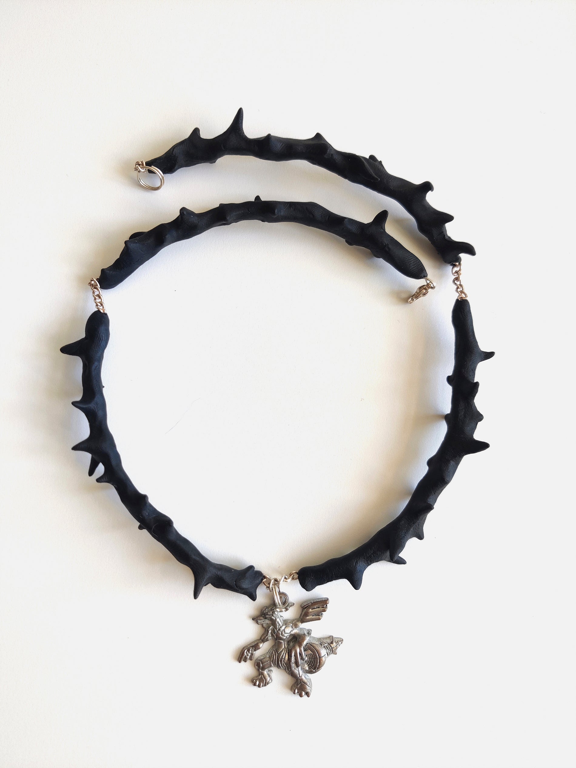 Vintage pendants and fittings are lovingly selected at flea markets and carefully restored. Sculptural shape is hand-builded and unique for each piece. Made out of polymer clay, necklaces are highly durable and soft - they will not break or scratch you.