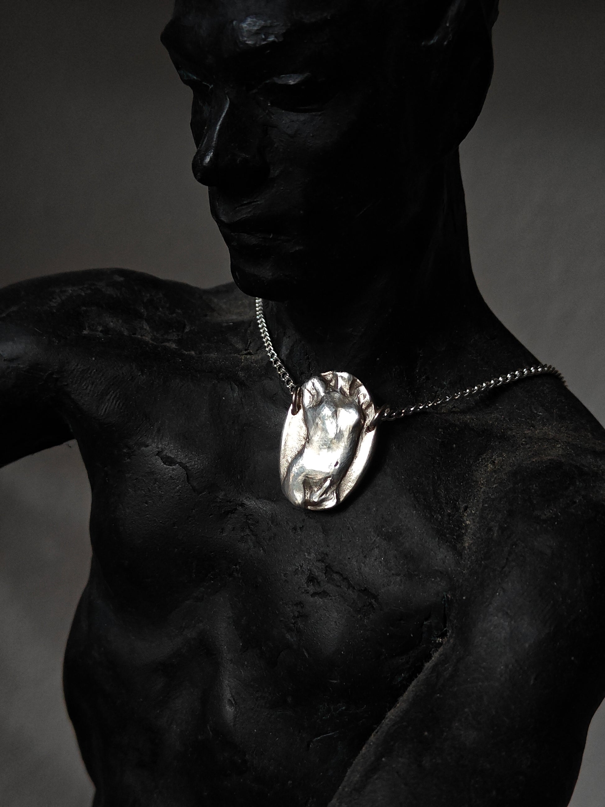 This pendant captures a torso of a trans feminine person that is both fragile and powerful — a reminder of becoming, of shaping oneself beyond boundaries.