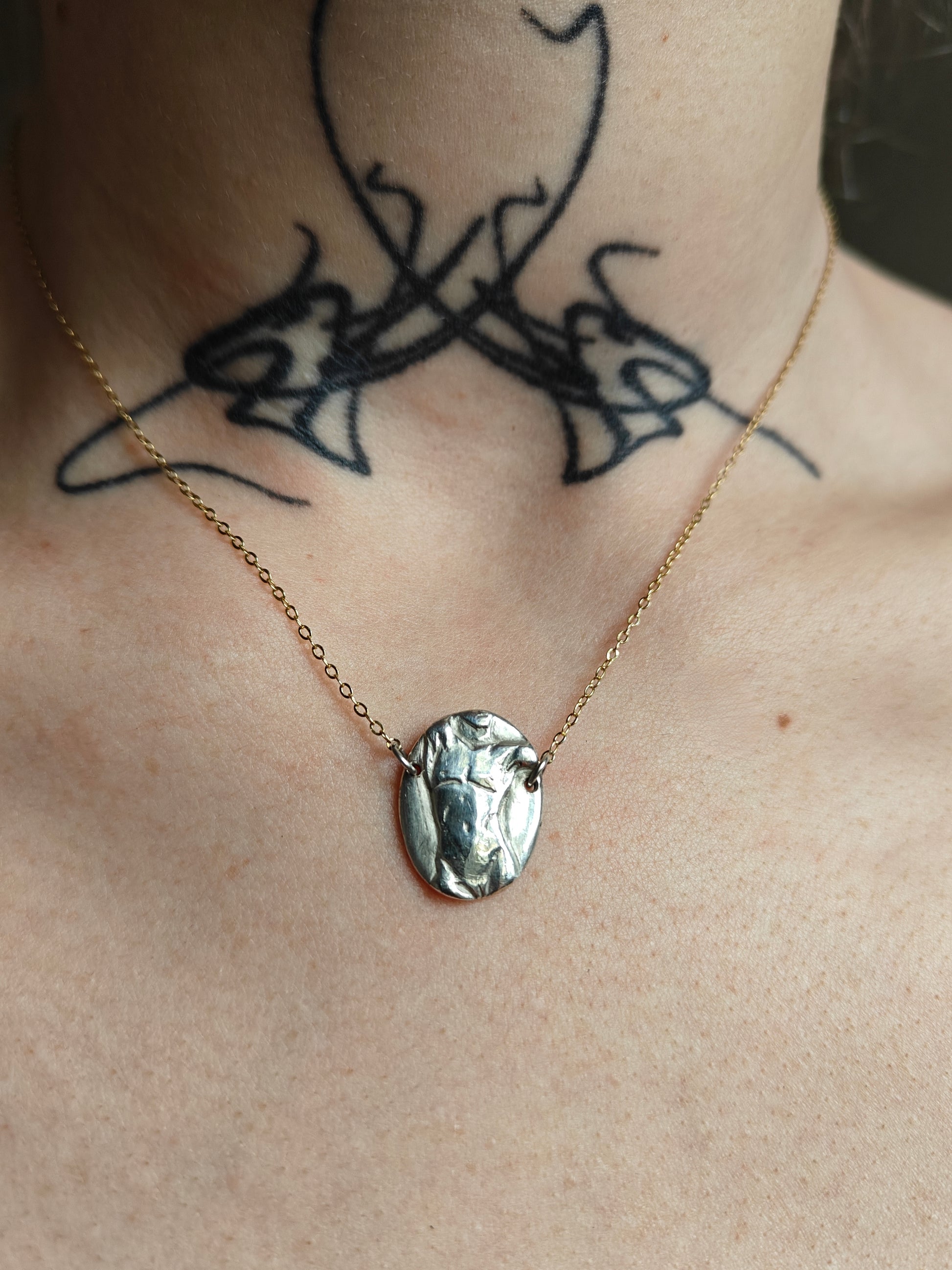 This pendant is made as a statement of resilience, depicting a transmasculine person torso.